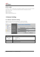 Type Description Export Settings The setting files from the PC file are applied to the module. Import Settings The system’s setting information is saved as a file in the PC. Logo Export Settings Logo Import Settings Load Factory Defaults Reboot User’s company logo file is saved in the PC. User’s company logo from the PC is applied to the system. ( GIF file size : 10K , 126x42) Change the module’s setting to default setting. Reboots the system. © Copyright 2012 WIZnet Co., Inc. All rights reserved.