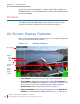 C h a p t e r 1 In s t a l la t i on O n - S c r ee n D i sp la y F e a t u r es to the unit. If the temperature is above 104°F (40°C) allow an additional 1RU 1.75” (44.45mm) space above and below the unit for air circulation. DC Power The MPEG-3270 and MPEG-4290 require 24 VDC at 3 Amps. They cannot be harmed by accidental reverse connection of power. On-Screen Display Features Some of the monitor display features (Figure 1–1) can be rearranged on the screen as described in this section.
