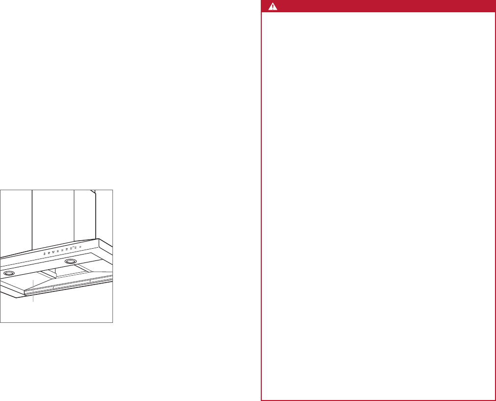 le côté gauche de la hotte, au-dessus des ltres (les ltres