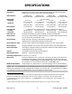 TABLE OF CONTENTS SPECIFICATIONS ............................................................................................................ 3 WARNINGS ..................................................................................................................... 4 OPERATING FEATURES ................................................................................................... 5 ASSEMBLY .............................................................................................................