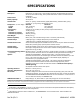 TABLE OF CONTENTS SPECIFICATIONS ............................................................................................................ 3 WARNINGS ..................................................................................................................... 4 OPERATING FEATURES ................................................................................................... 5 ASSEMBLY .............................................................................................................