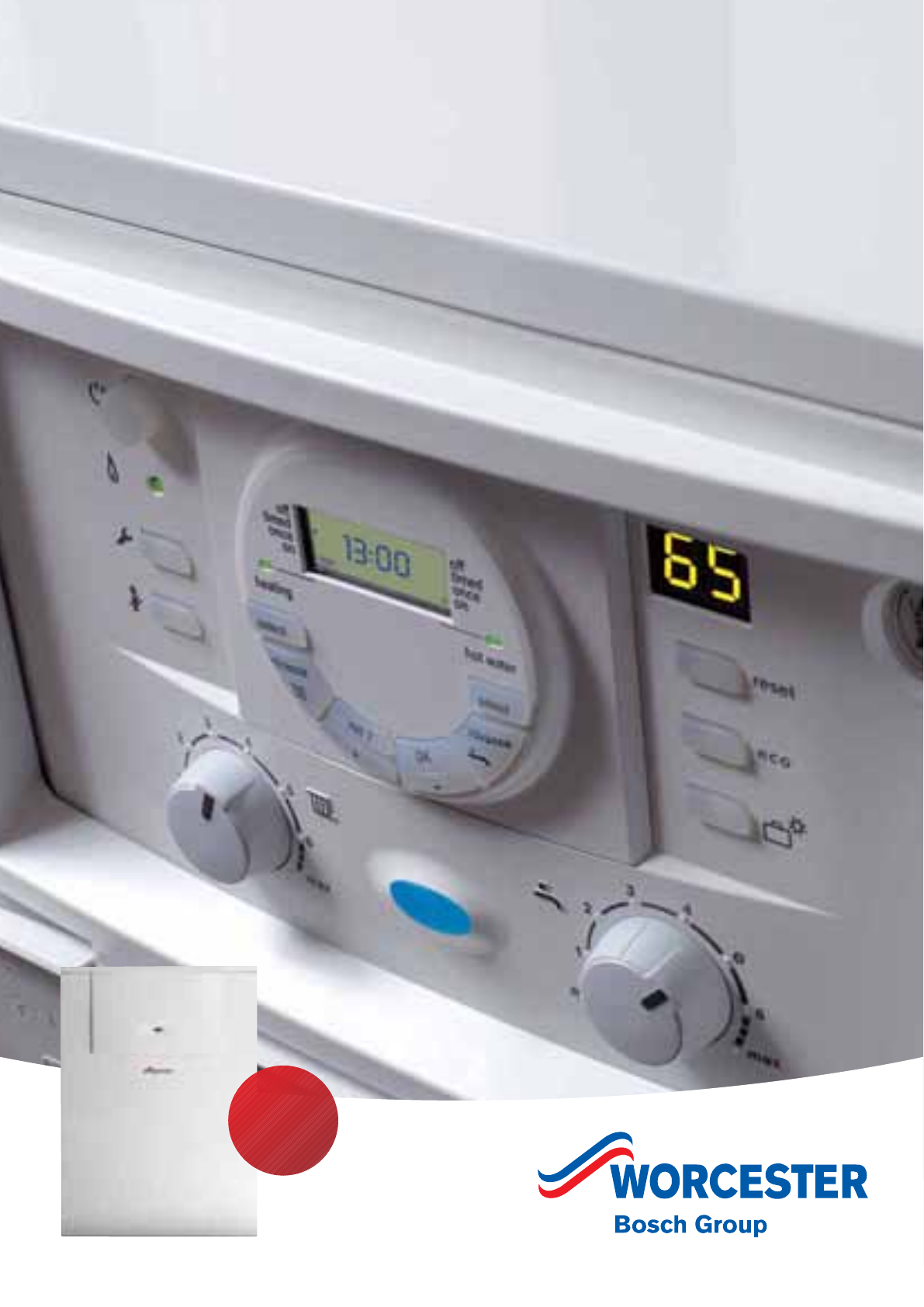Optional plug-in controls Greenstar Highflow CDi floor standing condensing combi boilers are available with a range of easy-to-use controls. These DT10RF optimiser fascia-mounted controls offer simple plug-in connection to the boiler circuit board. A seven day digital programmable RF thermostat with a seven day programmer/receiver in the boiler fascia for hot water. The transmitter is the tried and tested Optimiser as Mechanical timers available with other Worcester boilers.