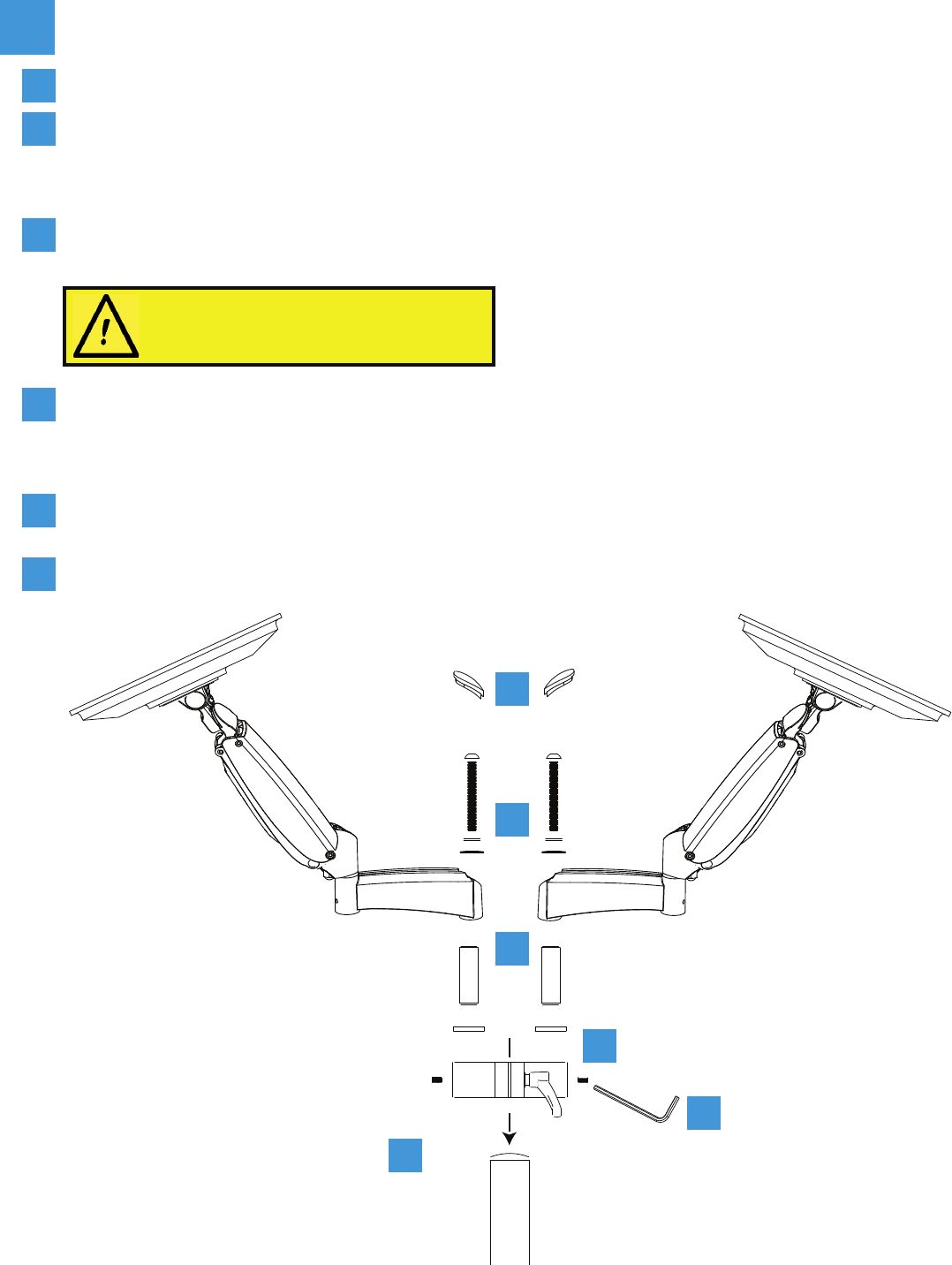 Press the end caps onto the ends of the monitor arms, covering the 70mm bolts.
