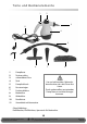 Teile und Bedienelemente 1 2 3 11 4 10 5 9 8 1 Dampftaste 2 Tankverschluss 3 schwenkbare Düse 4 Tank 5 Dampfschlauch 6 Fensterreiniger 7 Punktstrahldüse 8 Bodendüse 9 Winkeldüse 10 Rundbürste 11 Stromkabel mit Netzstecker 7 6 Vor und während des Gebrauchs darauf achten, dass die Düsen fest sitzen. Durch unkontrolliert austretenden Dampf kann es zu Verbrühungen kommen.