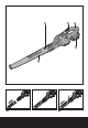 1. Poignée 2. Commutateur 3. Bouton de dégagement du tube 4. Tube de soufflage 5. Batterie 6. Mécanisme de retenue du bloc-piles(Voir B) 7. Support de montage mural(Voir E1) * Les accessoires illustrés ou décrits ne sont pas tous compris dans le cadre de la livraison standard. DONNÉES TECHNIQUES Tension Vitesse a vide nominale Vitesse de soufflage Temps de chargement Poids de la machine 12 24V Li-ion 12500/min 120mph 3-5hr 1.7kg(3.