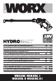 ODPRAVLJANJE NAPAK Napake Dejanje Spustite napravo pod 1,5 m od tal. Filter cevi je blokiran. Odstranite filter cevi in izperite dele s čisto vodo. (Glejte sliki T1 in T2) Vrtna cev za dovajanje vode ni dobro pritrjena na napravo. Preverite pritrditev cevi in jo po potrebi ustrezno pritrdite. (Glejte sliko G3) Cevni adapter pušča. S ključem ustrezno pritrdite cevni adapter. Mrežica filtra ni nameščena. (Glejte sliko G2) Posvetujte se s predstavnikom WORX in naročite novo mrežico filtra.