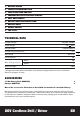 1. MANDRIL SIN LLAVE 2. EMBRAGUE AJUSTABLE 3. CONTROL DE VELOCIDAD ALTA/BAJA 4. BOTÓN DE ADELANTE/ATRÁS/TRABA 5. MANGO BLANDO 6. LENGÜETAS DE LIBERACIÓN DE LAS BATERÍAS 7. PAQUETE DE BATERÍAS 8. LLAVE DE ENCENDIDO/APAGADO 9. LUZ DE VISTA DATOS TÉCNICOS Voltios 100-240V~50/60Hz Tensión nominal 20V Velocidad sin carga Max* 0-350/0-1300/min Velocidad nominal en vacío 20 Torque máximo 265 lb-pulg Capacidad del porta brocas Capacidad de perforación 15+1 Acero Madera 3/8pulg.(10mm) 3/8pulg.