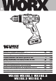 TECHNICAL DATA Type WX152.2 WX152.3 WX152.1 WX152 WX152.4 (1-designation of machinery, representative of Cordless Drill) Voltage 16V No load speed Max* 0-350/0-1350/min Number of clutch positions 15+1 Max torque 30N.m Chuck capacity 10mm Max. drilling capacity Steel 10mm Wood 25mm Machine weight 1.24kg * Voltage measured without workload. Initial battery voltage reaches Maximum of 16 volts. Nominal voltage is 14.4 volts.