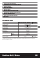 1. TWO-SPEED GEAR CONTROL 2. FORWARD/REVERSE ROTATION CONTROL 3. ON/OFF SWITCH 4. SOFT GRIP HANDLE 5. BATTERY PACK 6. BATTERY PACK RELEASE BUTTON 7. ELECTRONIC TORQUE-ADJUSTING DIAL 8. COLLET LOCKING SLEEVE 9. DUAL CHUCK RELEASE BUTTON 10. LED LIGHT TECHNICAL DATA WX176L WX176L.1 WX176L.2 Charger voltage WX176L.9 100-240V~50/60Hz Rated voltage 20V No load speed Max* 5 0-400/0-1500/min Clutch positions 11+1 Max torque 265 in.lbs Chuck capacity 1/4 inch Steel 3/8 inch Wood 1-3/16 inch Max.