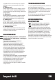 ADDITIONAL SAFETY POINTS FOR YOUR DRILL 1. Wear ear protectors with impact drills. Exposure to noise can cause hearing loss. 2. Use auxiliary handles supplied with the tool. Loss of control can cause personal injury. 3. Hold power tools by insulated gripping surfaces when performing an operation where the cutting tool may contact hidden wiring or its own cord. Contact with a ‘live’ wire will make exposed metal parts of the tool ‘live’ and shock the operator.