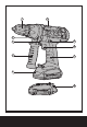 1. Mandrin 2. Embrayage variable 3. Éclairage 4. Poignee auxiliaire 5. Pack batterie * 6. Verrou de pack batterie 7. Poignée grip souple 8. Commutateur on/off (marche/arret) avec controle a vitesse variable 9. Controle de rotation avant, arriere et de verrouillage 10. Niveau a bulle (Voir G) 11. Control de l’engrenage * Les accessoires reproduits ou décrits ne sont pas tous compris avec le modèle standard livré.