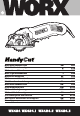 TECHNICAL DATA Description WORX mini multi-function saw Type WX424 WX424.1 WX424.2 WX424.3 (4-designation of machinery, representative of saw) Voltage 230-240V~50Hz Power input 310W No load speed 2800/min Blade diameter 76x10mm Cutting capacity 22mm Protection class /II Machine weight 1.