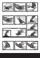 ikke saven og bladet fra arbejdsstykket, mens bladet bevæger sig. Det kan skade udskæringen, forårsage tilbageslag, tab af kontrol og medføre alvorlig personskade. j) Når bladet og saven er fri af arbejdsstykket (Se Fig. Kf), falder den nedre bladafskærmning og sålen automatisk ned, hvorefter bladafskærmningens udløserhåndtag griber fat i den øvre bladafskærmning og låser bladet over sålen (Se Fig. Kg). ADVARSEL: Brug aldrig saven med hænderne anbragt som vist i Fig. L2. 100 7.