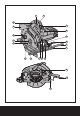 1. Lock-off button 2. ON/OFF switch 3. Laser on/off switch 4. Front handle 5. Base plate angle scale 6. Base plate bevel lock 7. Parallel guide 8. Base plate 9. Parallel guide lock knob 10. Spindle lock button 11. Laser guide 12. Outer flange 13. Lower guard 14. Saw blade* 15. Blade bolt 16. Lower guard lever 5 17. Vacuum adapter 18. Rear handle 19. Depth of cut scale 20. Hex key 21. Depth of cut adjustment lever 22. Inner flange (See Fig.