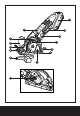 near the edge of the panel. e) Do not use dull or damaged blades. Unsharpened or improperly set blades produce narrow kerf causing excessive friction, blade binding and kickback. f) Blade depth and bevel adjusting locking levers must be tight and secure before making cut. If blade adjustment shifts while cutting, it may cause binding and kickback. g) Use extra caution when making a “plunge cut” into existing walls or other blind areas. The protruding blade may cut objects that can cause kickback.