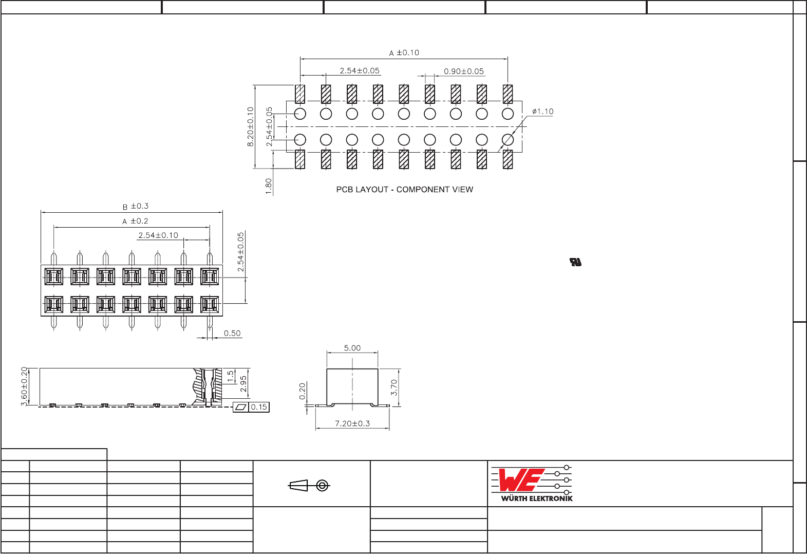 UNIT: MM DESCRIPTION: 2.54MM SMT DUAL SOCKET BOTTOM ENTRY