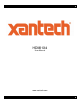 SPECIFICATIONS Video Amplifier Bandwidth Input Video Signal Input DDC Signal Single Link Range Input Connector Type Output Connector Type Power Consumption Power Supply Dimensions Shipping Weight 1.65 Gbps 1.2 volts p-p 5 volts p-p (TTL) 1080p / 1920 x 1200 HDMI Type A 19 pin female HDMI Type A 19 pin female 10 Watts (max.) 5V DC 12”W x 1.25”H x 4.125”D 5 lbs. Technical Support Hours: 7AM-5PM Pacific Phone: 800.843.5465 press 2 for Tech Support Fax: 800.492.6832 email: tech@xantech.