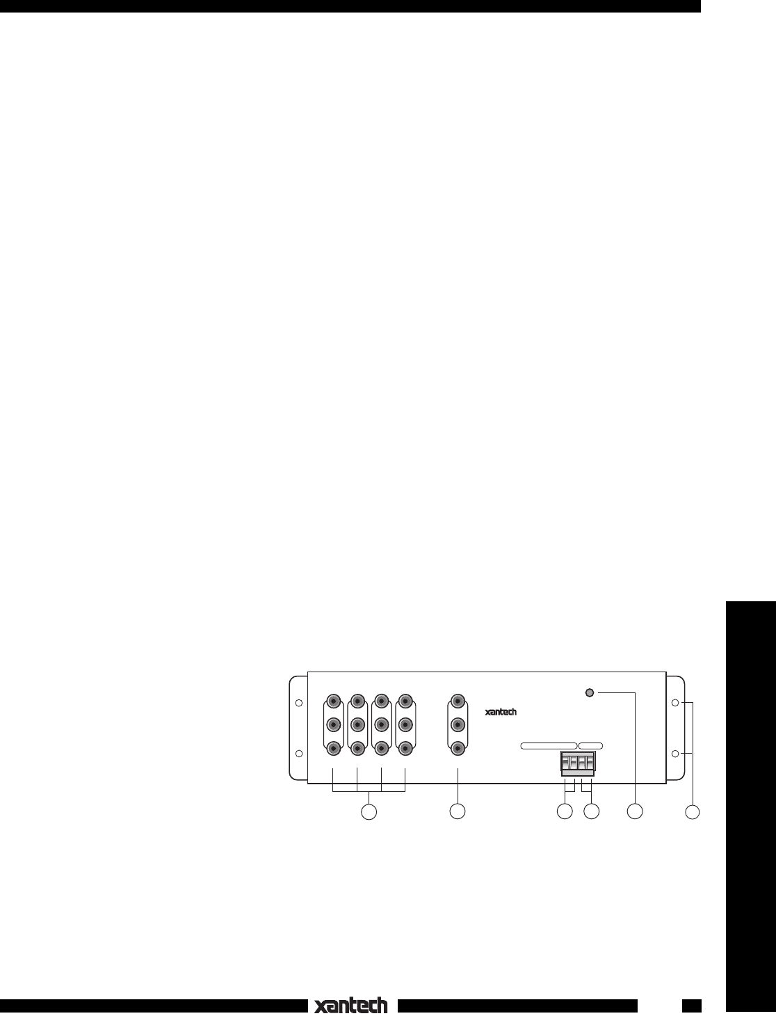 • IR control input port connects to the emitter output of Xantech devices, allowing remote control from