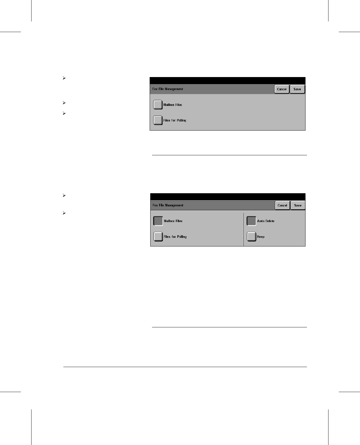 Delete in 24 hours (DC220/230) automatically deletes all failed fax documents after 24 hours.