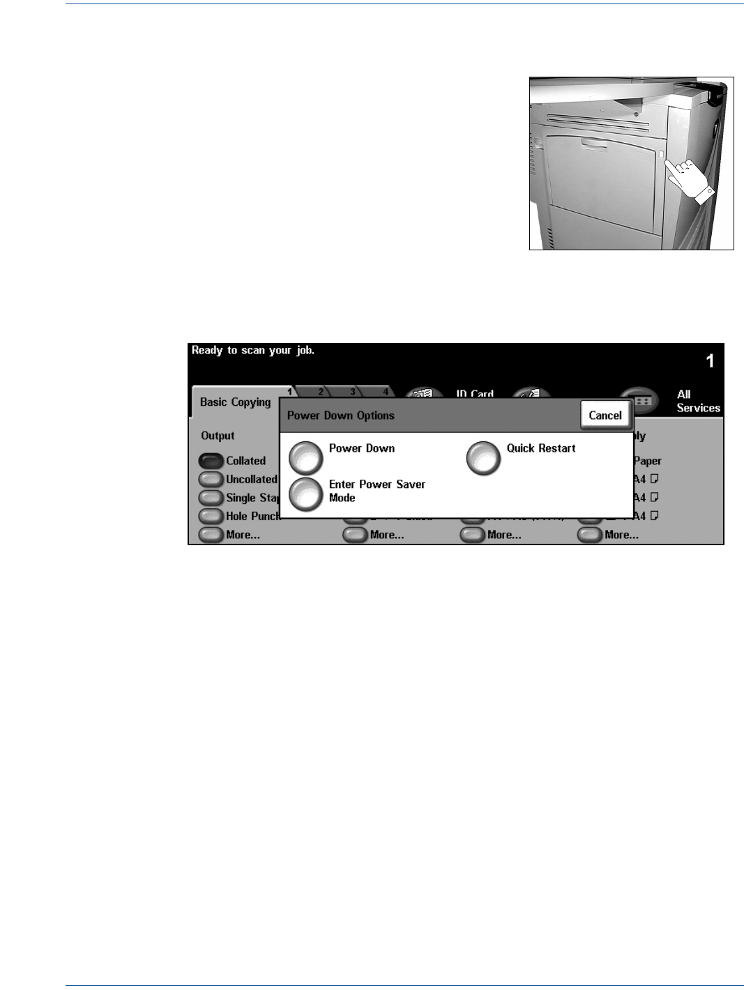 ¾ If [Cancel] is selected the power down options will be canceled and the machine will be