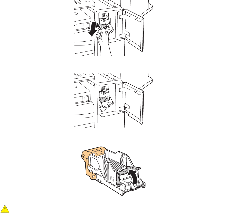 4. Das Heftklammermagazin am orangefarbigen Griff fassen und gerade aus dem