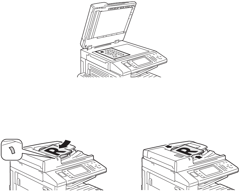 Die Vorlagen mit der Vorderseite nach oben einlegen. Die Papierführungen so einstellen, dass sie an