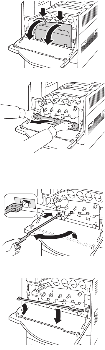 3. Den Tonersammelbehälter an den orangefarbigen Zungen fassen und den Behälter herausziehen.