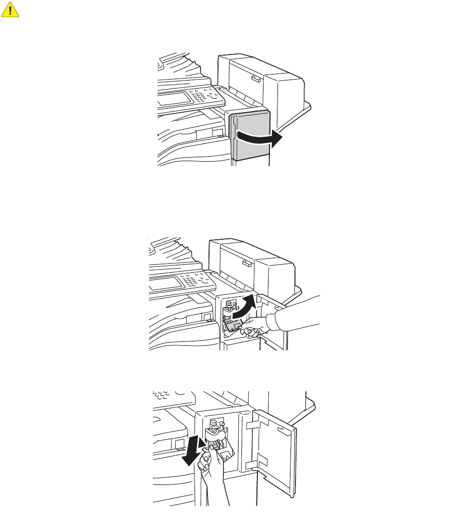 2. Das Heftklammermagazin befindet sich im Finisher. Die Heftereinheit bis zum