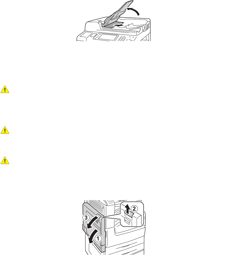 9. Wenn das gestaute Papier nicht sichtbar ist, Vorlageneinzugsfach anheben und gestautes