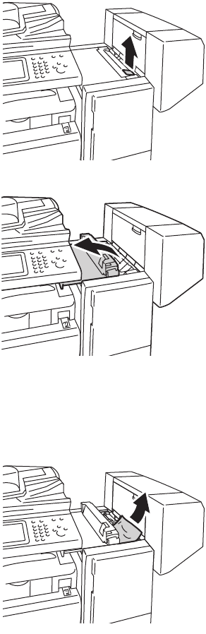 1. Zum Öffnen der oberen Finisherabdeckung den Hebel nach oben ziehen.
