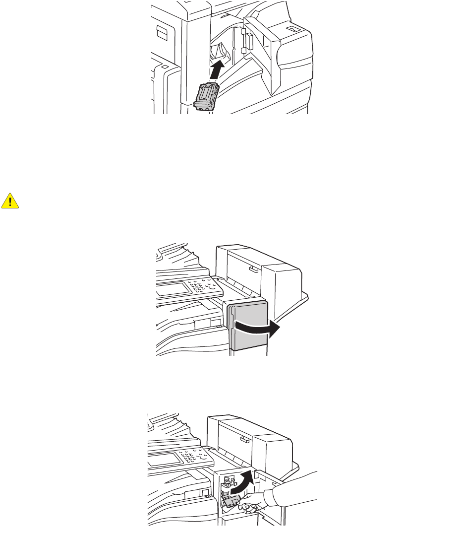 2. Der Hefter befindet sich im Finisher. Den Hefter bis zum Anschlag herausziehen.