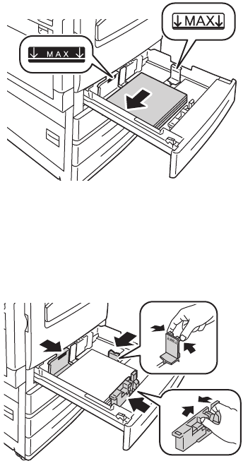 5. Die Druckmaterialführungen so einstellen, dass sie die Kanten des Druckmaterialstapels