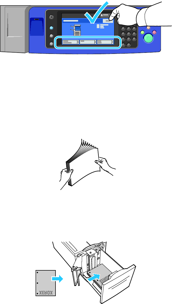 − Plaats het briefhoofd of de bovenkant van de pagina naar de voorkant van de lade.