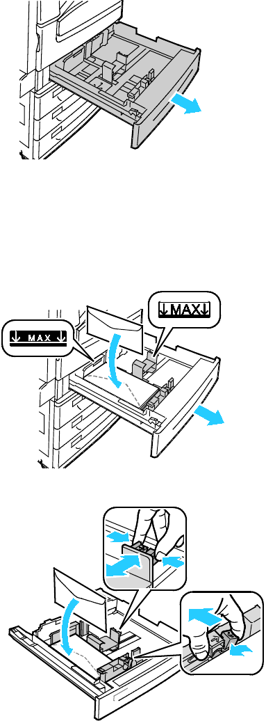 3. Pas de papiergeleiders aan tot ze de rand van de enveloppen net raken.