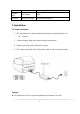 paper tray(optional) Reliable data TPH lifespan 50km Software Operation System XP/Win7/Win8/Win10 3. Installation 3.1 Power connection 1. PLS take attention to make confirmation if the printer power button on “off” position. 2. Connect adaptor plug with printer outlet at second step. 3. Adaptor pin plug contact with power socket. 4. PLS connect the other side of the power cable to the power plug socket.