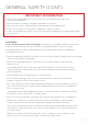 GENERAL SAFETY (CONT.) IMPORTANT INFORMATION • Do not expose this appliance to rain or moisture as it may result in fire or an electric shock hazard • Do not tamper or change or modify the product in any way. • Only use Accessories outlined and recommended by the manufacturer. • Please do not expose the product to splashing or water contact • Please do not place any object on top of the product including objects filled with liquids such as vases.