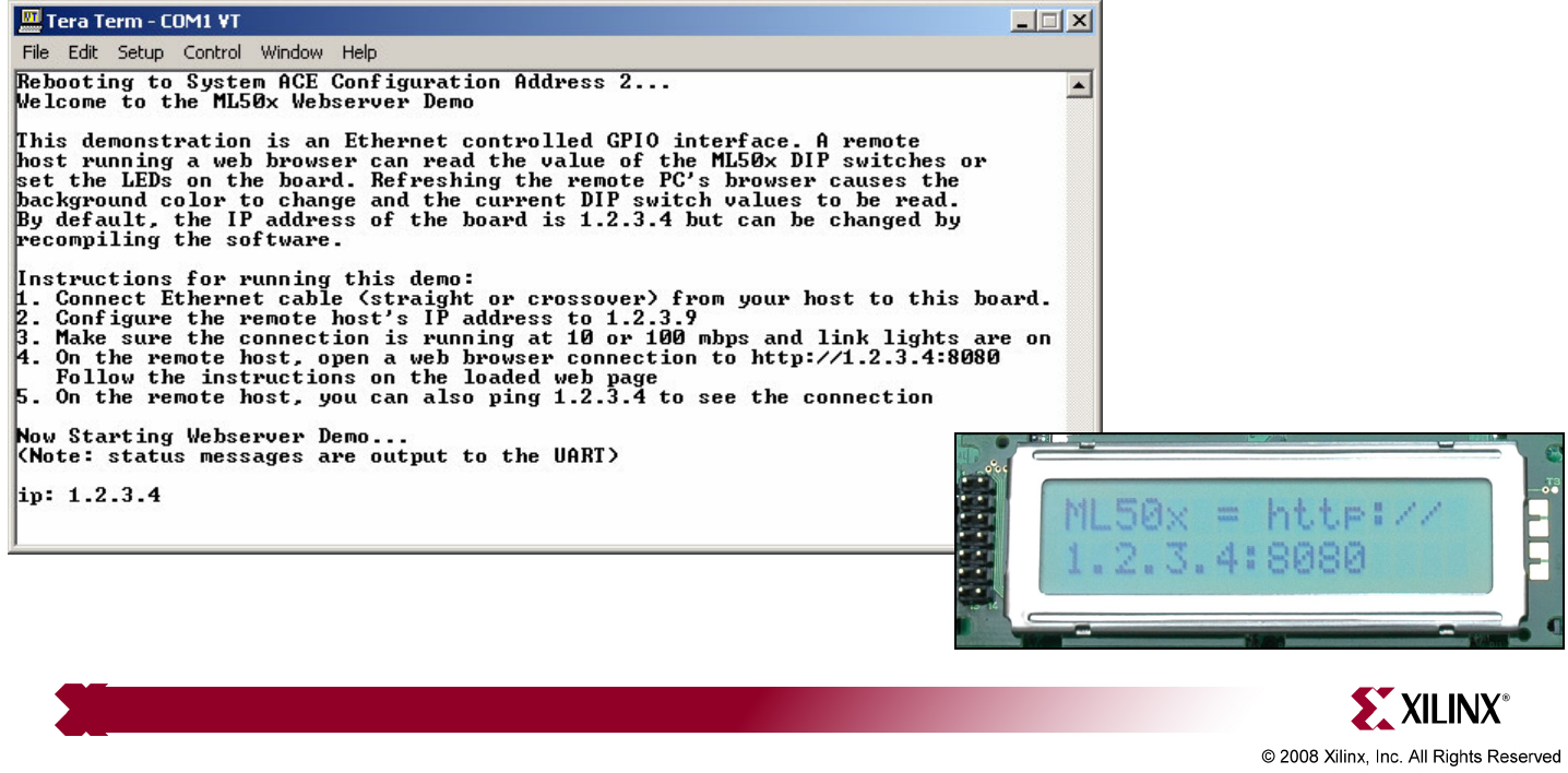 Note: Host IP is 1.2.3.9, subnet mask is 255.0.0.0; Ethernet connection is 100 Full Duplex