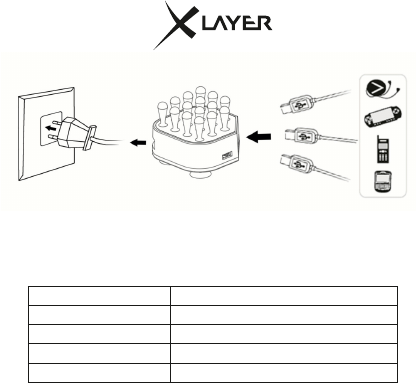 Handbuch Ladegerät XLayer Family Charger Mini 4-Port USB Modellnummer Input Output Größe Gewicht 212728, 212729, 212730 (TR-096) AC 100-240V 5.0V / 6.
