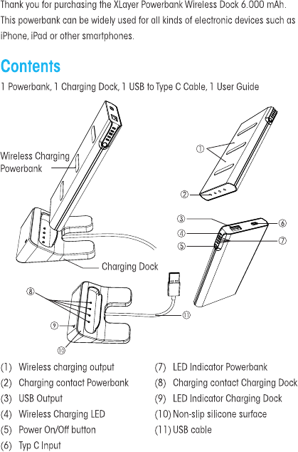 Xlayer Wireless charger 6000 mAh Plus-Dock 2in1 215777 Outputs Inductive charging standard, USB Anthracite