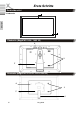 Device (MegaPAD 2704 V2 / 3204 V2) Frontside English Backside 1 2 3 4 5 6 Power front camera touchscreen speaker Threaded holes for mounting the adjustable stand Threaded holes for mounting on mounting systems to push on / off the device (page 8) MegaPAD 7
