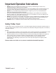 Important Operation Instructions • • • • • • NEVER operate this treadmill without reading and completely understanding the results of any operational change you request from the computer. Understand that changes in speed and incline do not occur immediately. Set your desired speed on the computer console and release the adjustment key. The computer will obey the command gradually. NEVER use your treadmill during an electrical storm.