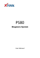 PS80 Diagnosis System Declaration 1. This manual is designed for the usage of PS80, applying to PS80 automotive diagnosis platform. No part of this manual can be reproduced, stored in a retrieval system or transmitted, in any form or by any means (electronic, mechanical, photocopying, recording, or otherwise), without the prior written permission of Xtool. 2. Use the device only as described in this manual.
