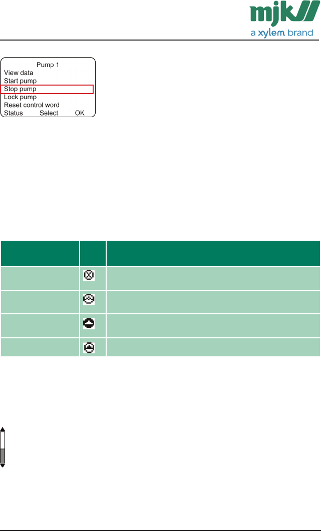 If you wish to stop a pump in use, use the up/down arrows to select Stop