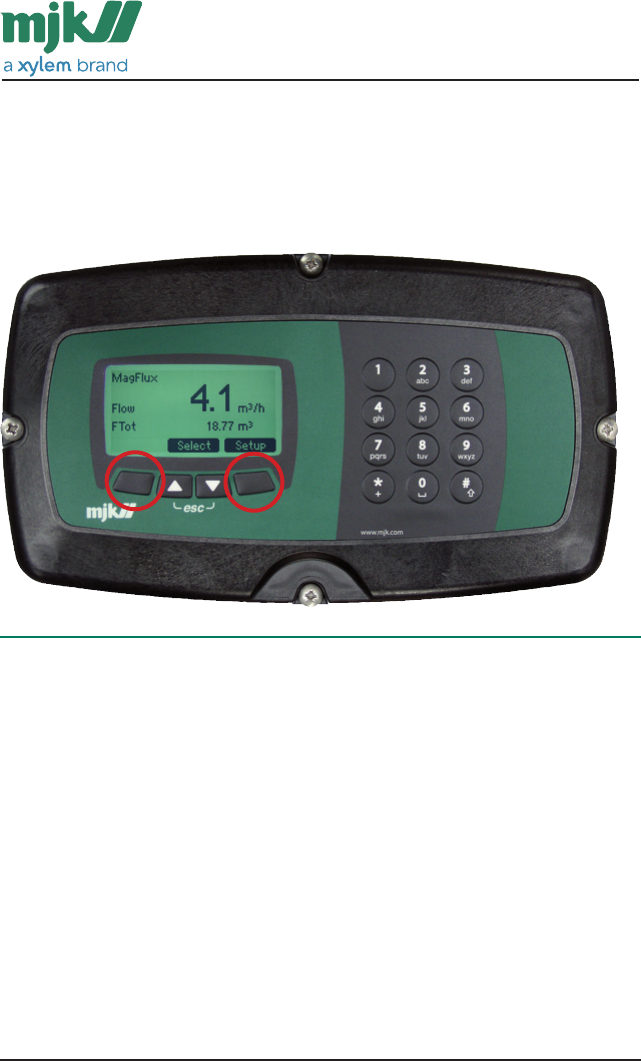 Configure the display contrast by pressing the two outer soft keys simulta-