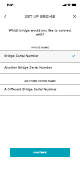 9:41 SET UP BRIDGE Which bridge would you like to connect with? HOUSE NAME Bridge Serial Number Another Bridge Serial Number ANOTHER HOUSE NAME A Different Bridge Serial Number CONTINUE