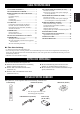 INNEHÅLL ANVÄNDBARA FUNKTIONER ............................ 1 FM/AM INSTÄLLNING (R-S202) ........................15 MEDFÖLJANDE TILLBEHÖR ............................. 1 Använda förinställda funktioner................................. 15 Ta emot information från Radio data system (Endast för Europa modell) .................................... 19 KONTROLLREGLAGE OCH FUNKTIONER ... 2 ANSLUTNINGAR .................................................... 9 FM INSTÄLLNING (R-S202D) ............................