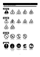 Cautions in Using with Safety Table of Illustrated Symbols Warning Warning, generally Warning, high voltage Warning, high temperature Warning, drive train Warning, explosive Caution, generally Caution, electrical shock Caution, scald Caution, no road heating Caution, not to drench Caution, water only Caution, deadly poison Prohibit, inflammable Prohibit, to disassemble Prohibit, to touch Compulsion, connect to the grounding terminal Compulsion, install on a flat surface Compulsion, discon