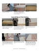 Install Windows, Trim, And Vents (149) Caulk around the perimeter of the window, and in every groove along the top, before moving to next step. (150) Install window, making sure (151) Lay out the trim for the winit is straight, then fasten it, using dow. three 2” screws per side. (152) Align side trim piece along the lines on the window frame as shown and attach using 2” trim nails. Repeat for the left trim piece. (153) Install the rest of the trim pieces as shown. Repeat for other windows.