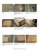 (19) Center the floor joist evenly with the flooring splice, then nail the back right corner, after making sure flooring is tight against, and flush with the previous piece. (20) Nail front right corner as shown, making sure the flooring is tight against previous piece, then nail along the splice. (22) Before you finish attaching the first row flooring to the joist, make marks 12” on center for a guide to adjust the joist when nailing.