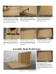 (53) Fasten to floor, using two 3” screws at every stud, trying to hit the floor joists. (54) Repeat for the rest of the wall, (55) Attach bottom edge of siding again; making sure wall is in to floor, using an 8” to 12” nail against the floor frame. spacing. Do not leave the back wall standing alone for a long period of time, without firmly bracing it. Assemble Front Wall Frame (56) Locate and lay out the parts to assemble the front wall. Note: Front wall plates have extra dados for the door and window.